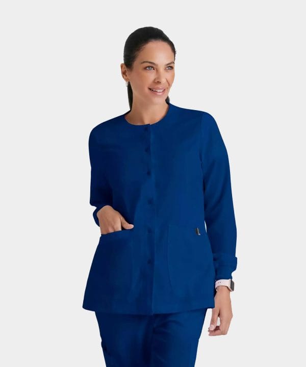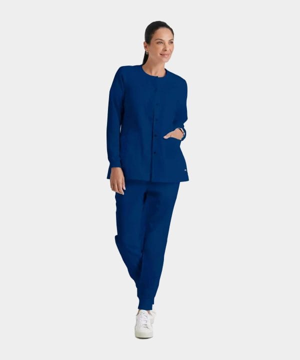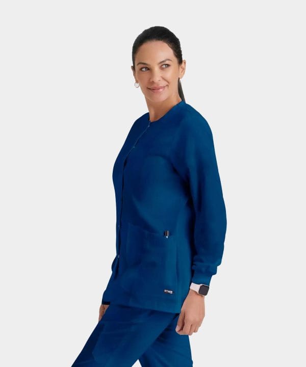 Stay comfortable on chilly mornings, late nights, or just when the office feels a little too cold with this women’s Grey’s Anatomy Classic warm-up jacket. Sweat-wicking and soft to the touch, this top keeps you dry no matter what your shift brings. Snap buttons make quick changes easy.