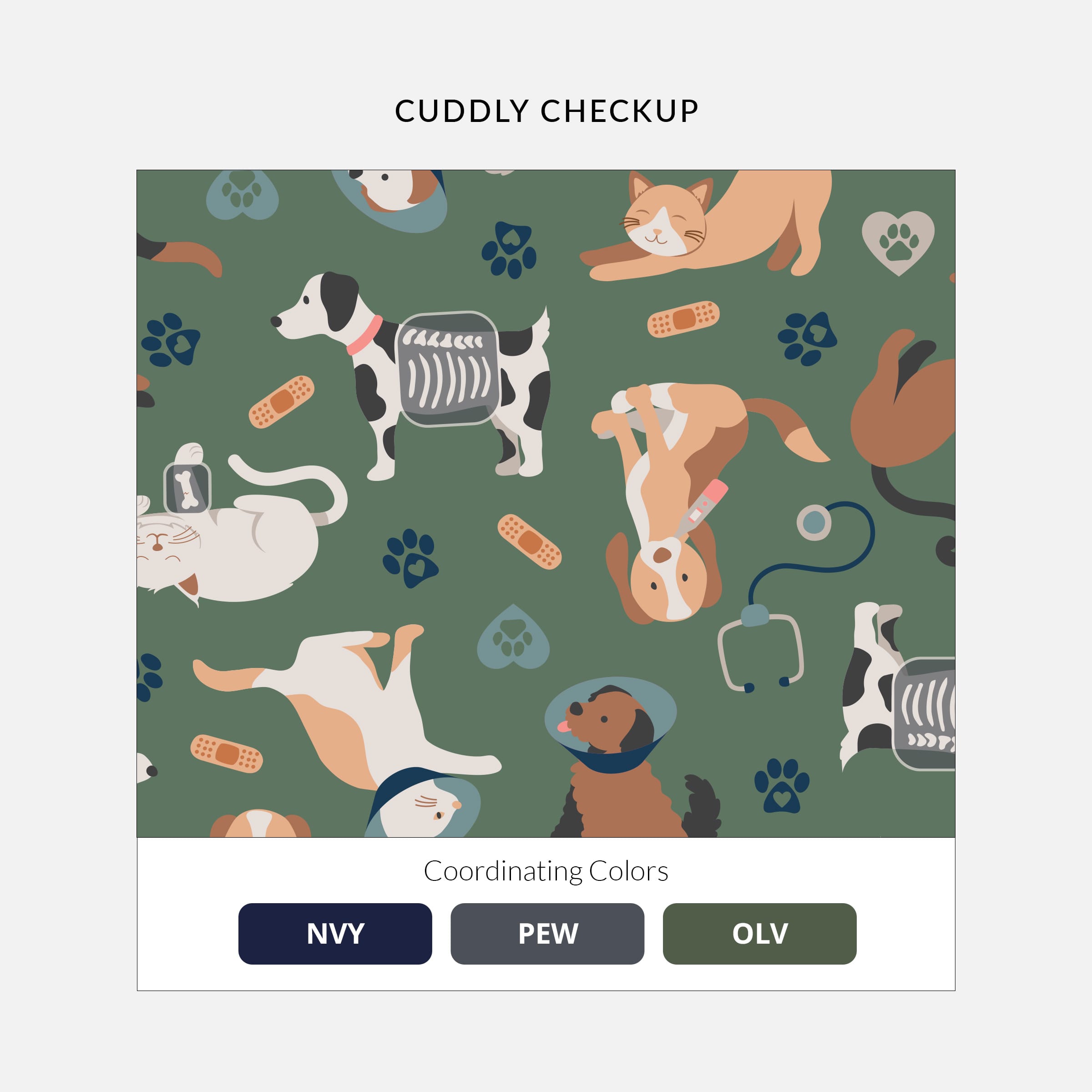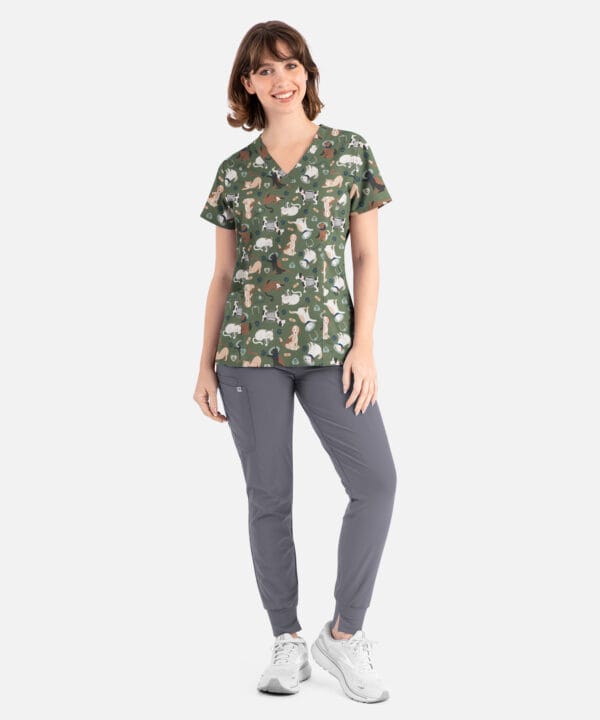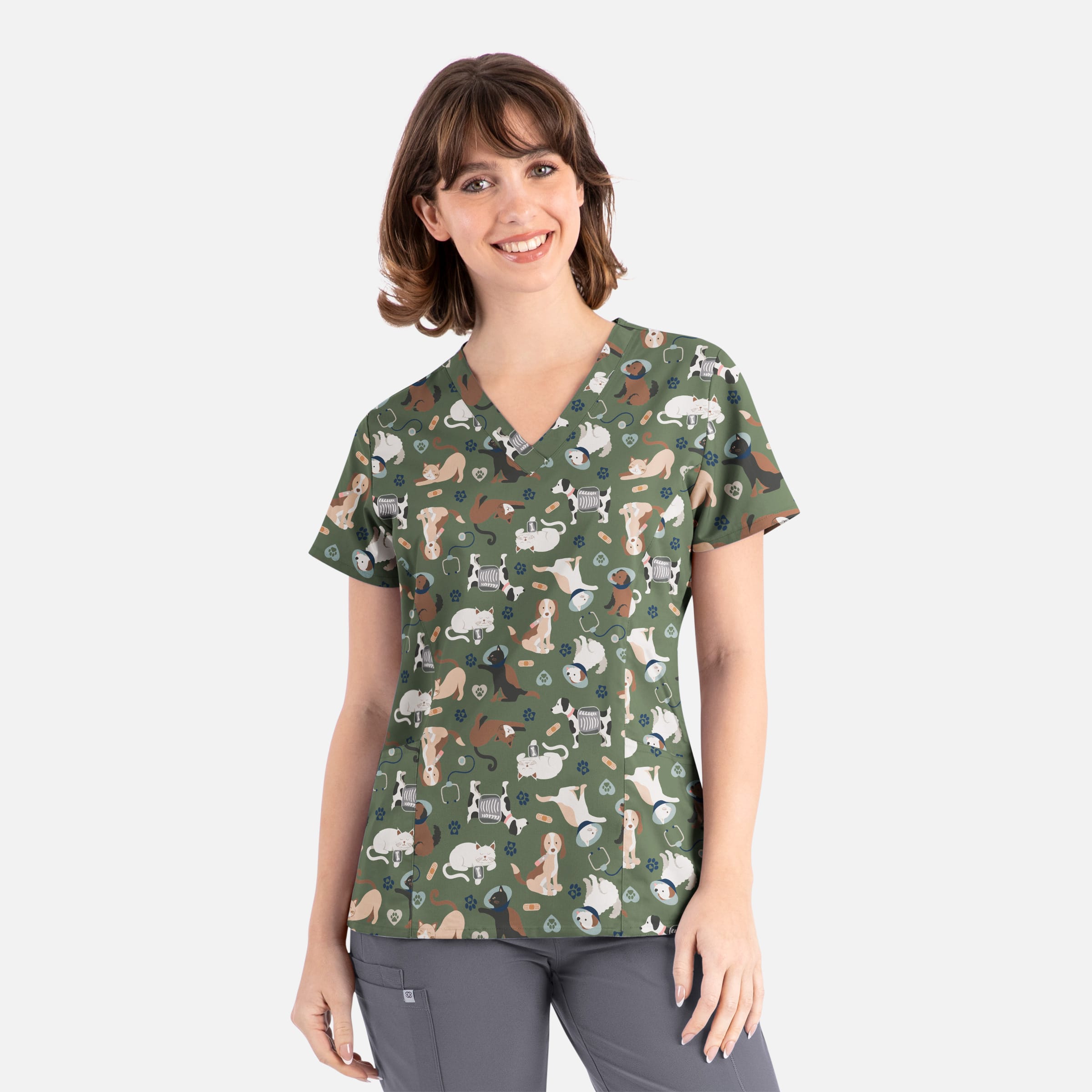 Women’s Curved V-Neck Print Top Cuddly Checkup | 1797-CUDD
