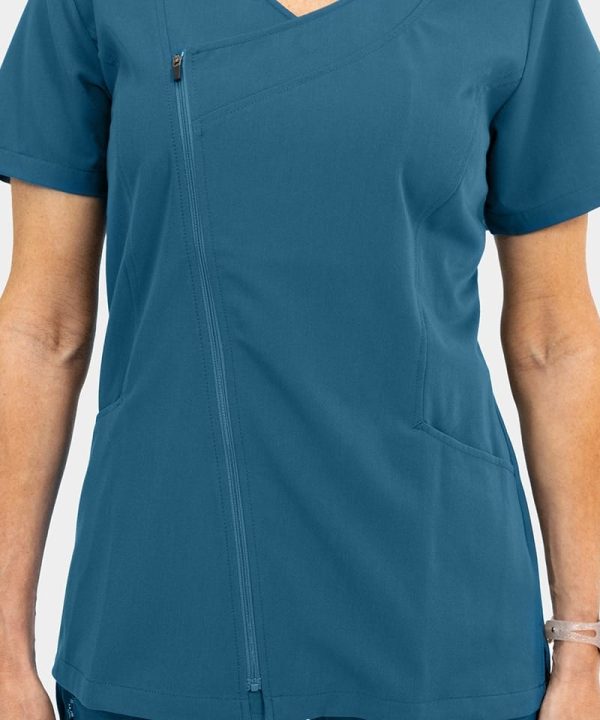Slip into unmatched style with our Women’s Dressy Asymmetrical Zipper Top. A fusion of unique cuts and sleek zipper accents in a soft poly/rayon and spandex blend. Ideal for office allure or late night shifts. Be a fashion-forward healthcare pro in this standout piece!